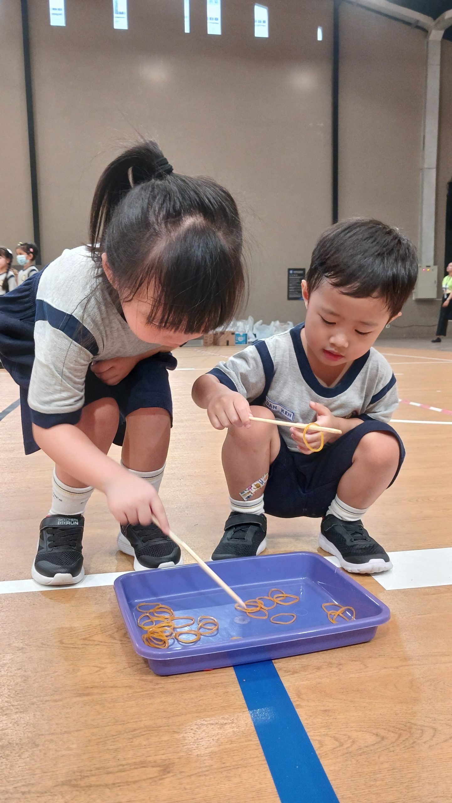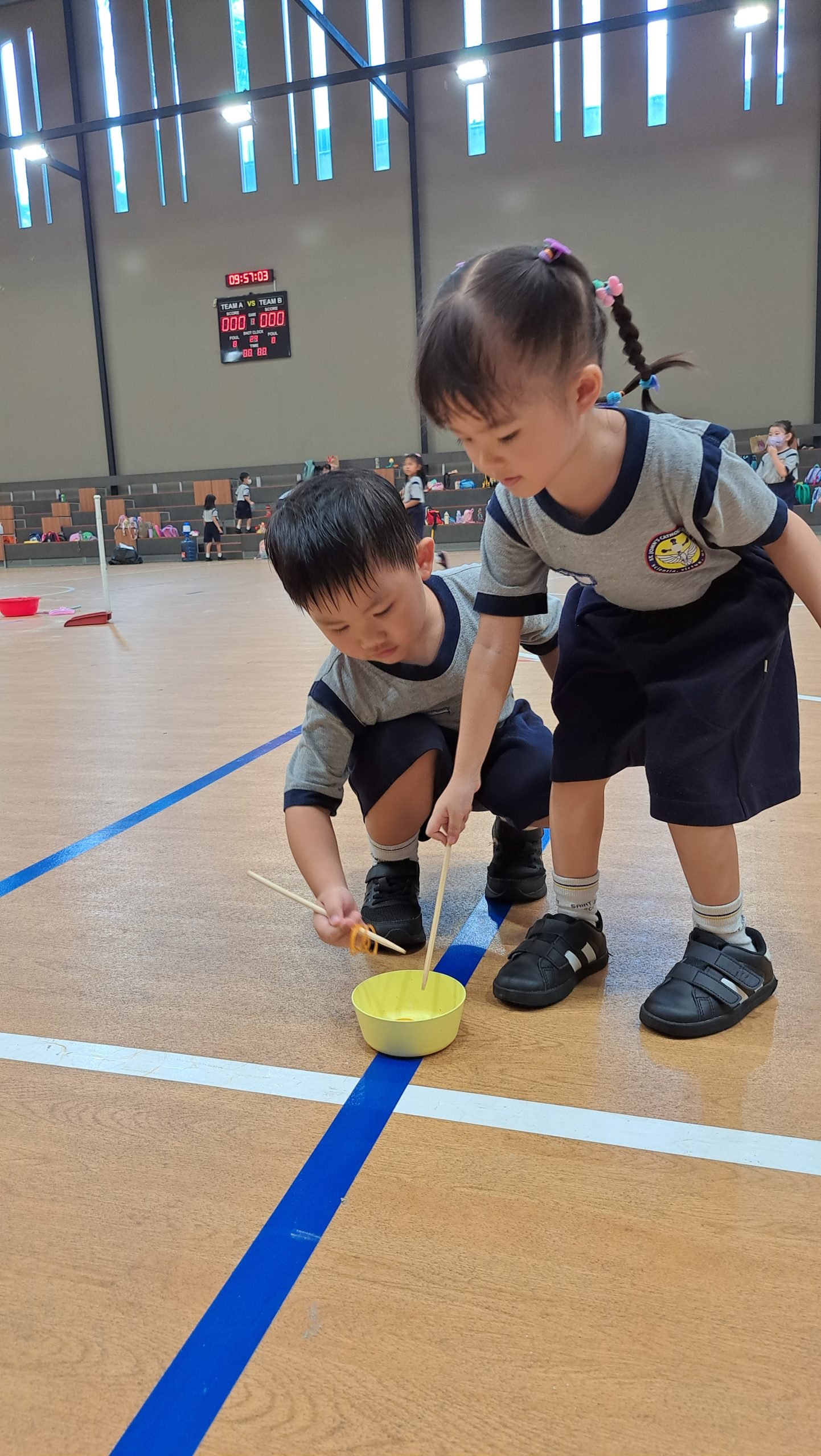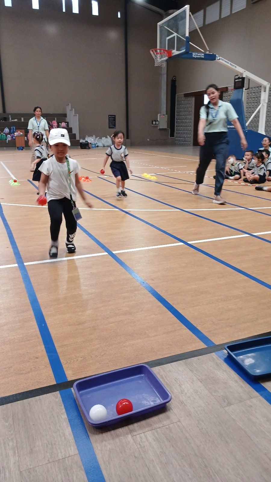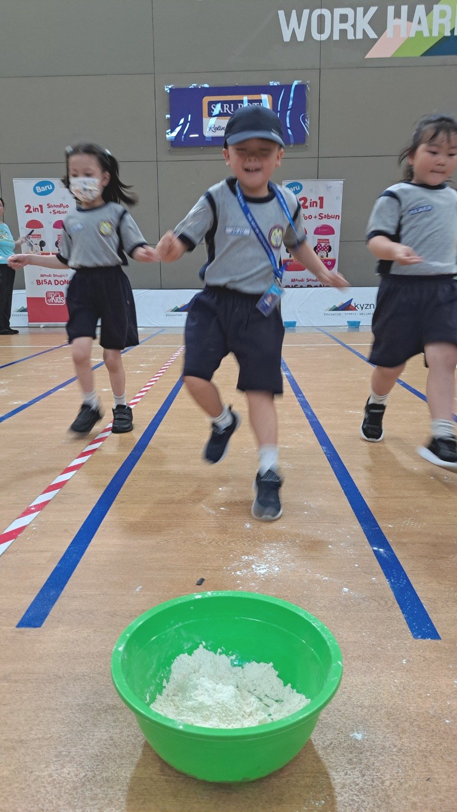 Murid- murid TK B bersenang-senang dengan lomba lari mencari kelereng dalam tepung, sementara murid- murid TK A berlomba menyembunyikan bola yang berwarna seperti permen dan memilah bola dengan semangat. Tim Kelompok Bermain pun tak kalah seru dengan lomba memindahkan bola dan menyendok karet menggunakan 1 batang sumpit!